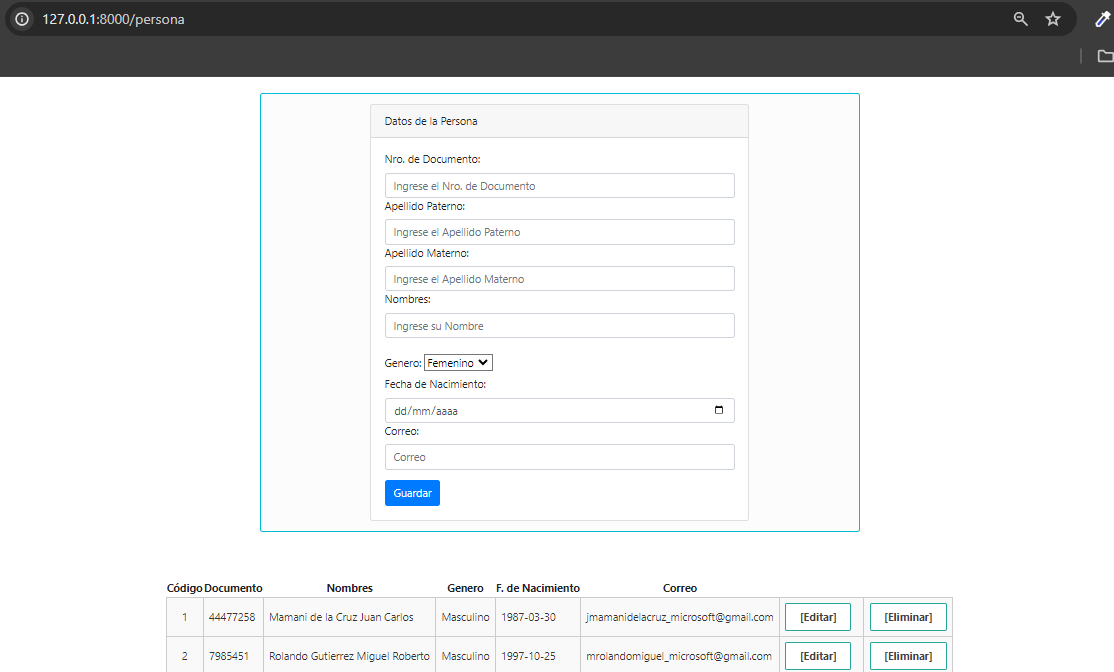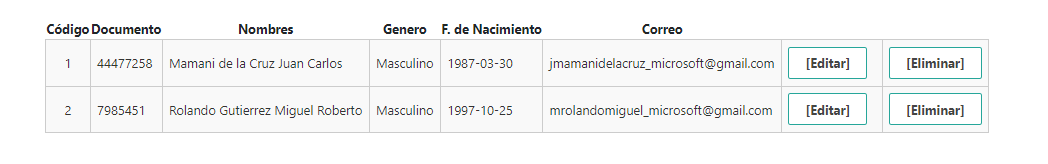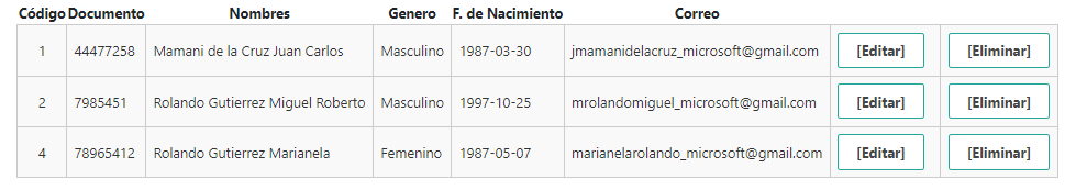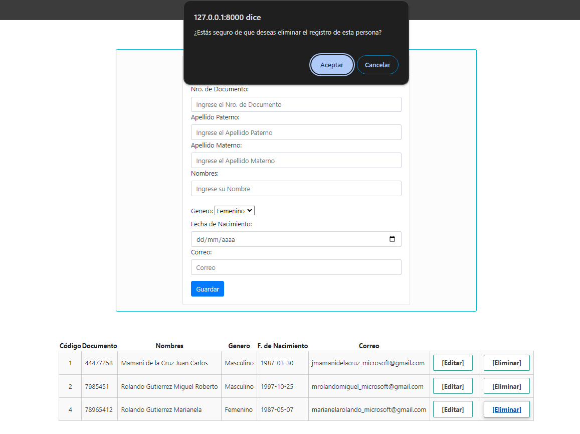 Captura de eliminar un registro