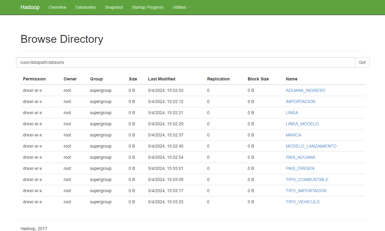 El proyecto de Importaciones Vehiculares tiene como objetivo analizar datos sobre las importaciones de vehículos, utilizando un conjunto de herramientas de Big Data para manejar y procesar grandes volúmenes de información. La fuente de datos proviene de registros oficiales de importaciones vehiculares, proporcionando detalles como el tipo de vehículo, el país de origen, la fecha de importación, y otros datos relevantes Justificación del Uso del Ecosistema Hadoop Para este proyecto, se ha elegido el ecosistema de Hadoop debido a sus capacidades robustas y escalables para el almacenamiento y procesamiento de grandes volúmenes de datos. A continuación, se describe cómo cada componente de este ecosistema contribuye a la solución: