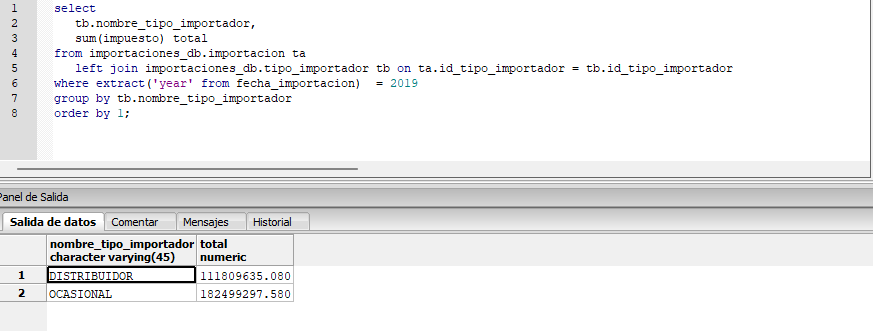 id_tipo_importador referencia a importaciones_db.tipo_importador( id_tipo_importador).