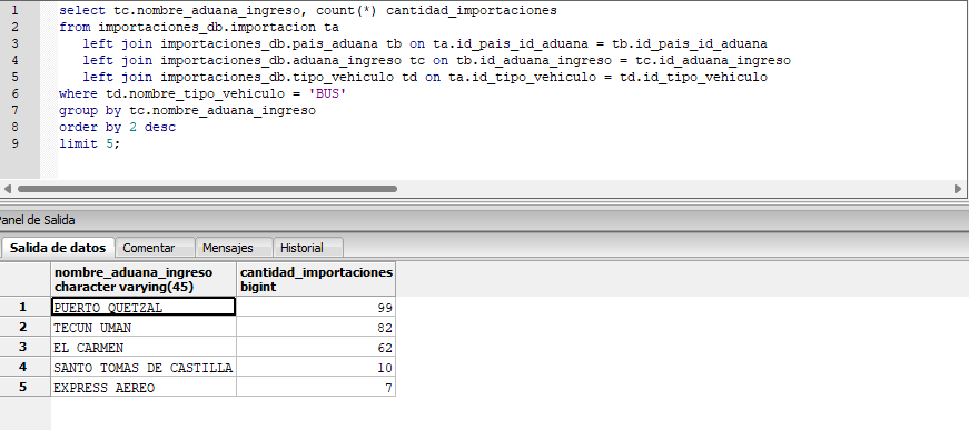 Este proyecto tiene como objetivo realizar análisis de datos directamente desde la fuente de datos utilizando consultas SQL. La base de datos está estructurada para almacenar información específica de importaciones vehiculares.Todo el proceso de modelamiento de datos se realizó en un proyecto anterior compartido en Git, el cual se puede encontrar Postgresq-modelado-y-carga-de-datos .
