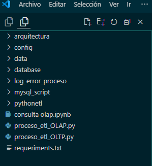 Los archivos proceso_etl_OLTP.py y proceso_etl_OLAP.py contienen la lógica necesaria para realizar el proceso ETL (Extract, Transform, Load) en los modelos OLTP y OLAP, respectivamente. proceso_etl_OLTP.py: