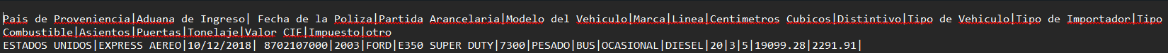 Es crucial comenzar por comprender la estructura y el contenido de los datos. Esto implica revisar las cabeceras y el formato de los archivos para identificar las columnas y tipos de datos que se manejarán. A continuación se muestra un ejemplo de cómo se ven las cabeceras de los datos en el archivo: